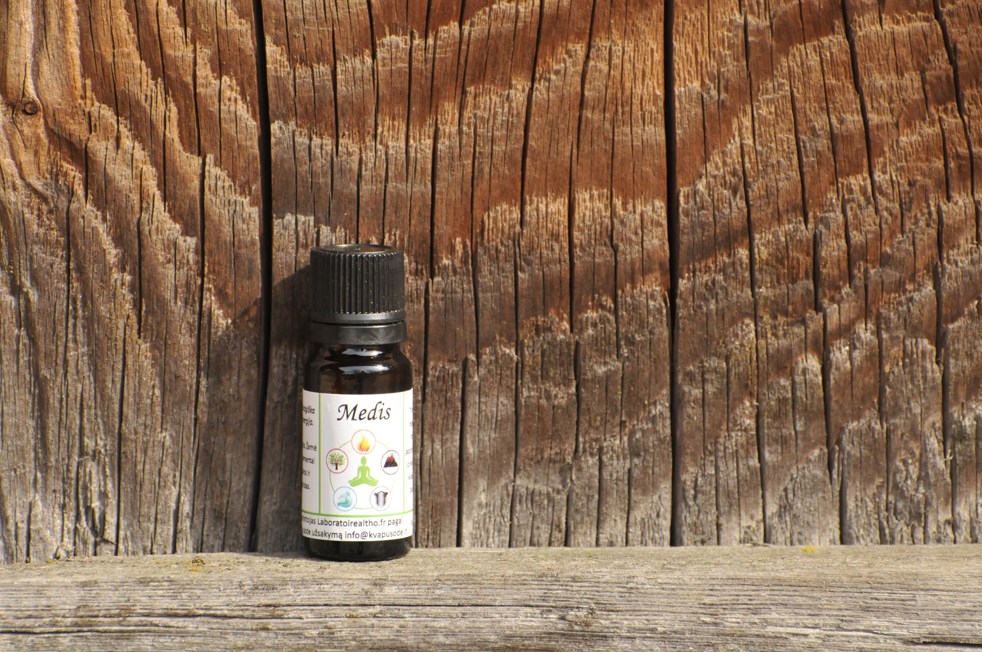 Eterinių aliejų sinergija „Medis“ padės įgyti pusiausvyrą, išmokti lankstytis ir siūbuoti it kokiam gluosniui, o ne stovėti nepajudinamai ir net sulūžti. Eteriniai aliejai turi stiprią gyvybinę jėgą, aukštus vibracinius dažnius ir gali pagelbėti susigrąžinti ąžuolo stiprybę ir gluosnio lankstumą. Medžio sinergijos aromatas padės išmokti suderinti atkaklumą ir jėgą su atvirumu bei ramumu, eiti pirmyn su visas ribas peržengiančiu ryžtu ir valia, matyti platesnį vaizdą, ieškoti geriausių sprendimų ir pradėti pokyčius. Išmokti valdyti pyktį ir susierzinimą, kalbėti apdairiai renkant žodžius, tvarkytis su nusivylimu.